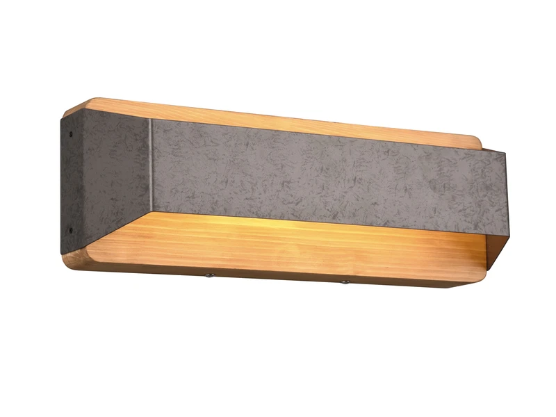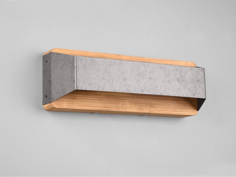 Die stylische Kombination aus Holz und Metall erhöht den Gemütlichkeitsfaktor und setzt zudem leuchtende Akzente. Das Metall-Element in Silber antik sorgt in Verbindung mit dem hellen Holz für eine freundliche, moderne Umgebung. Somit ist die Wandlampe mit einer Größe von 35,2 x 12 cm und einer Ausladung von nur 10 cm perfekt geeignet für viele verschiedene Einrichtungskonzepte.