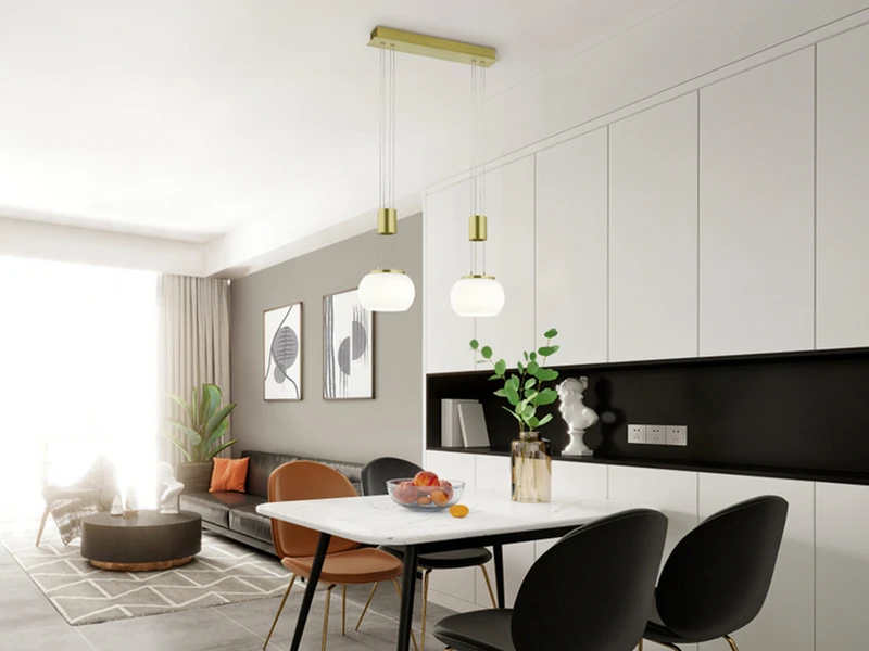 Die LED Pendelleuchte MADISON sorgt durch ihre moderne Formsprache für schlichte Eleganz. Die anmutigen Glasschirme können individuell in der Höhe verstellt werden und setzt die gewünschten Lichtakzente.