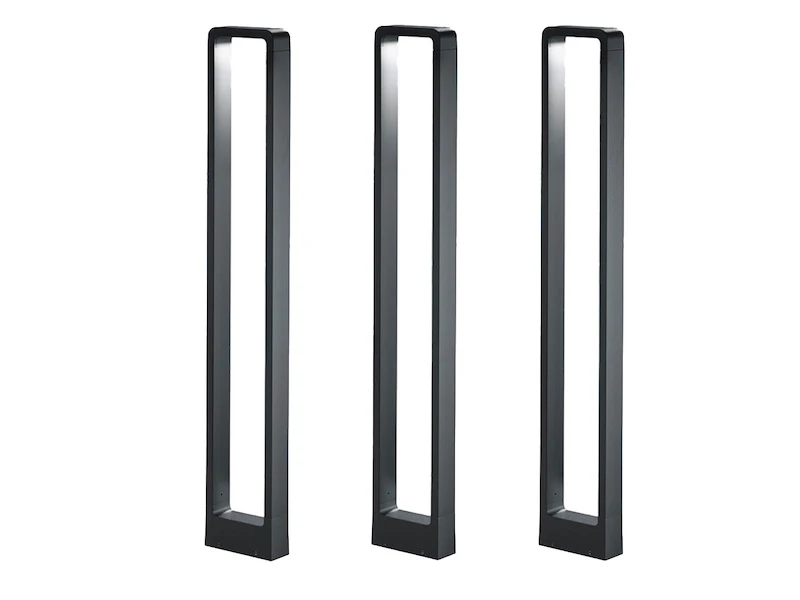 Diese LED Pollerleuchten im praktischen 3er Set passen sich durch ihr modernes Design fast jedem Bereich an und sind daher die ideale Außenbeleuchtung für den Hauseingang, Einfahrten oder für die Terrassen. Durch den nach unten gerichtete Lichtstrahl erhalten Sie eine gezielte Ausleuchtung mit schönem Lichteffekt auf Ihrem Gehweg oder in Ihrem Beet.