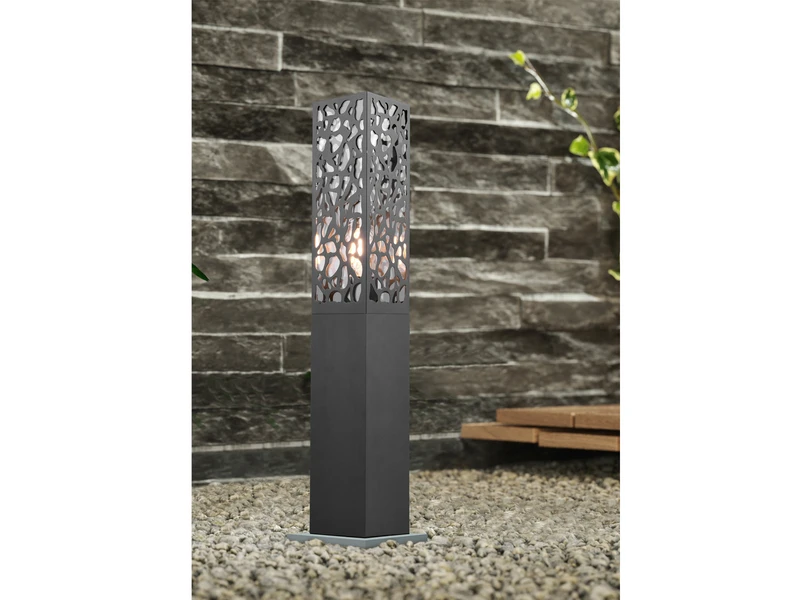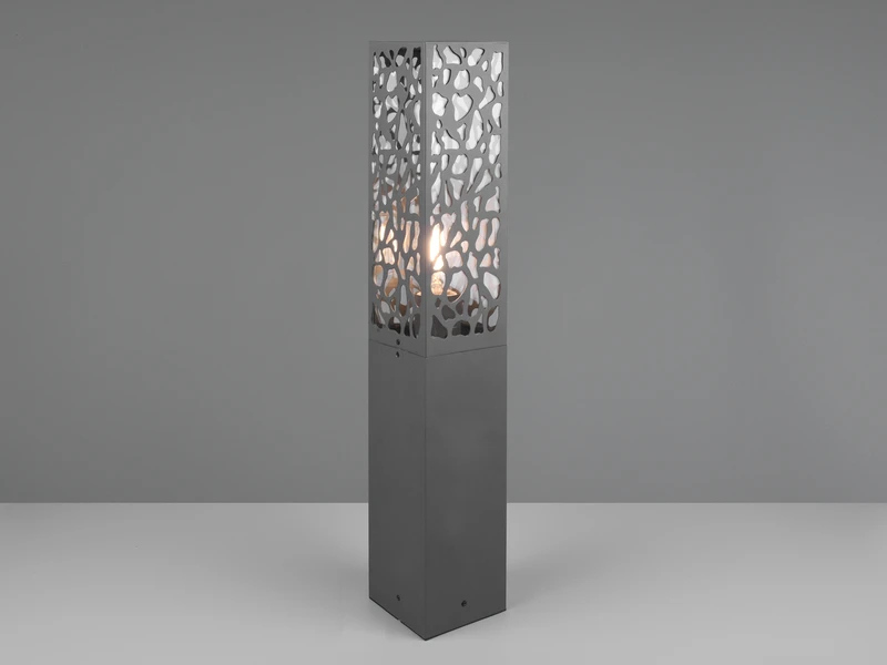 Die zeitlose, aber dennoch moderne Farbgestaltung in Anthrazit ermöglicht ein leichtes Kombinieren, der 60 cm hohen und 10 x 10 cm großen Sockelleuchte, in Ihren Outdoor-Bereich.
