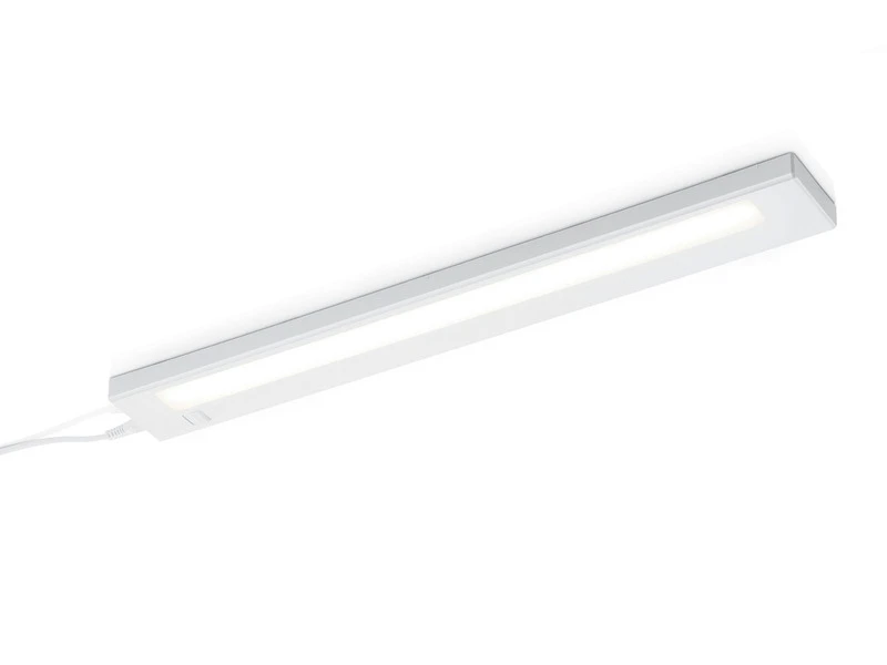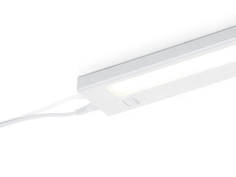 Gefertigt ist die Unterschrankleuchte aus robustem, weißem Kunststoff und lässt sich über ihren Ein/Aus Schalter einfach bedienen.