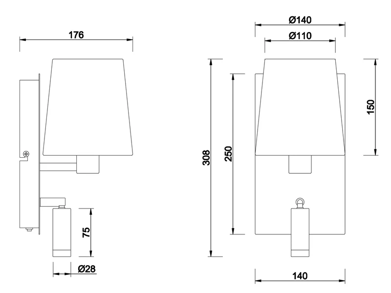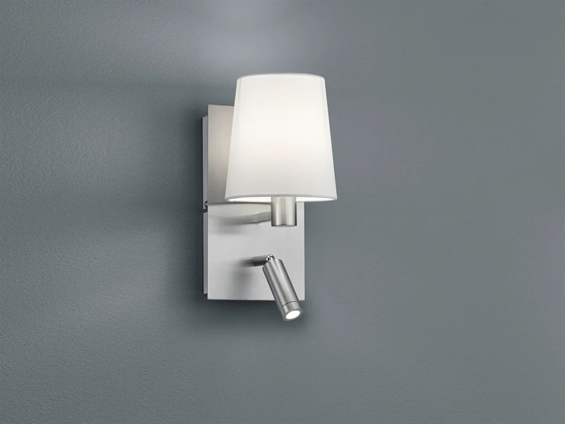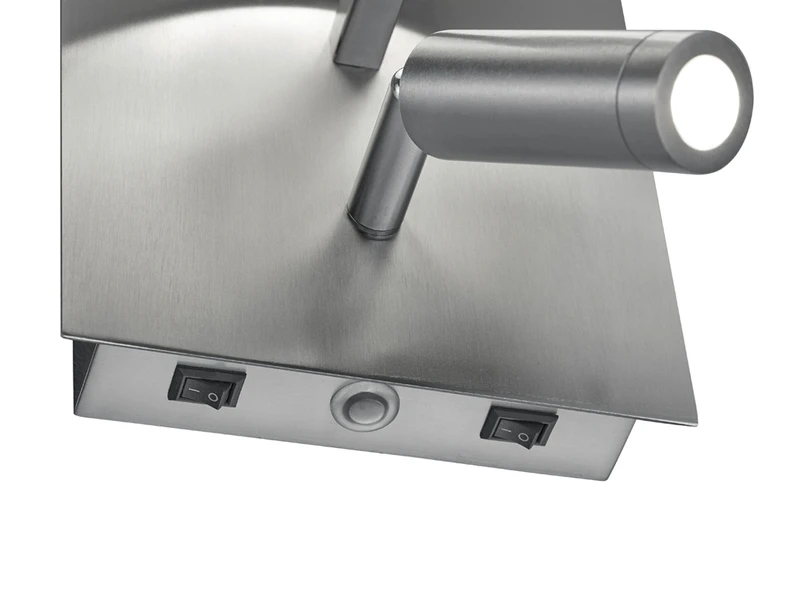 Besonders praktisch ist die schwenkbare LED Leselampe mit einer Leistung von 3,1 Watt und 310 Lumen in Warmweiß. So haben Sie zusätzlich ein effektives und gezieltes Leselicht, wobei sich die beiden Lichtquellen über zwei Kippschalter am Leuchtenkorpus getrennt schalten lassen. Die Wandlampe selbst ist mit einer E14 Fassung ausgestattet und wird inklusive eines austauschbaren LED Leuchtmittels mit einer Leistung von 4,5 Watt und 470 Lumen in Warmweiß geliefert.