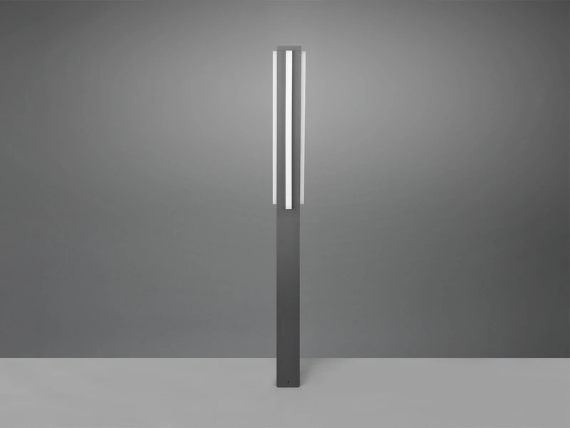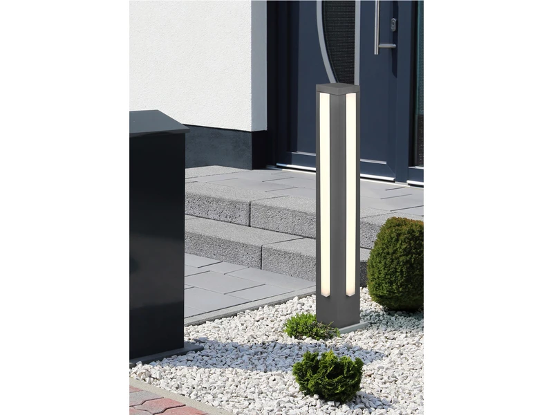 Zahlreiche Anwendungsmöglichkeiten bietet die 150 cm hohe und 13,6 x 13,6 cm große Pollerleuchte durch die schlichte Form und die moderne Farbgebung in Anthrazit und Weiß.
