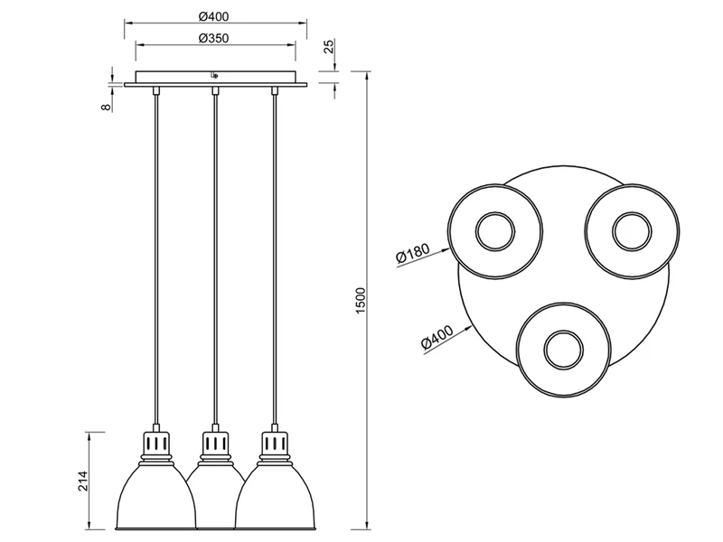 Die Pendellampe ist mit drei E27 Fassung ausgestattet und für Leuchtmittel max. je 40 Watt geeignet (nicht enthalten). Bei Verwendung eines dimmbaren Leuchtmittels können Sie das Pendel über Ihre Hausinstallation dimmen und so zusätzlich für eine ganz individuelle Beleuchtung sorgen.