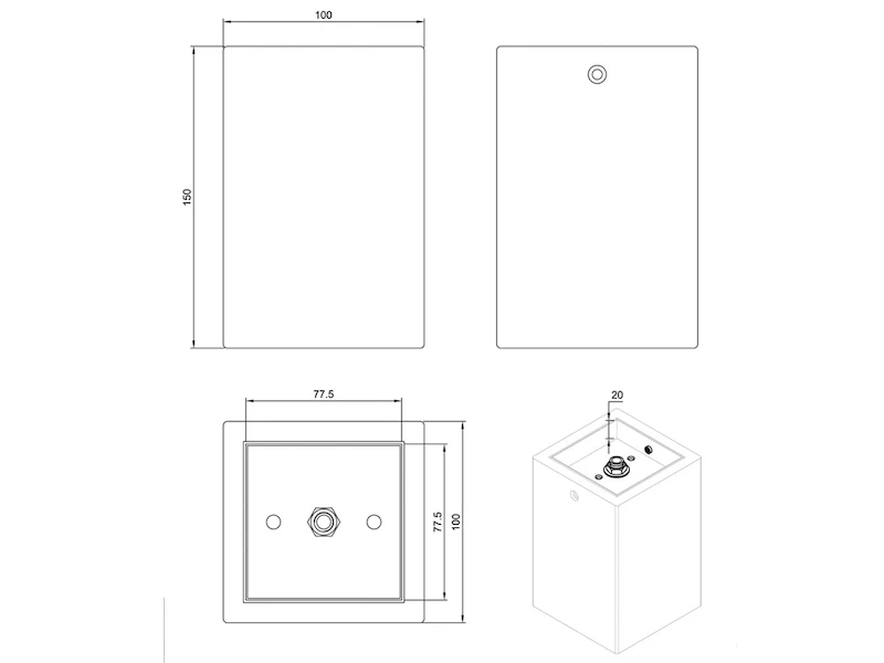 Der rechteckige Spot hat eine Breite von 10cmx10cm sowie eine Höhe von 15cm und kann mit einem GU10 Leuchtmittel (nicht enthalten) bestückt werden, das eine Leistung von 35 Watt nicht überschreiten.