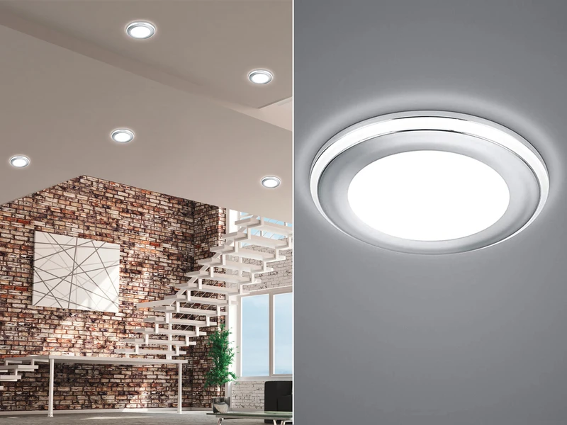 Der Einbaustrahler AURA bietet Allgemeinbeleuchtung gepaart mit einer getrennt schaltbaren Effektbeleuchtung. Der seitliche Lichtstreifen spendet brilliante Lichtakzente und verwirklicht spielend leicht verschiedene Lichtergebnisse. Die Leuchte in Silber Chrom lässt sich mit vielen Wohnstilen und Ambienten kombinieren.