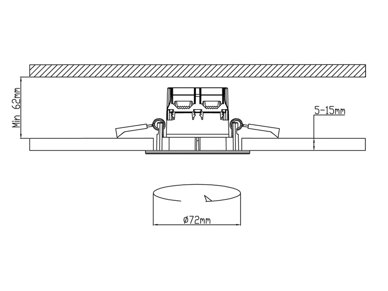 Die runde Einbaulampe aus Metall hat einen Durchmesser von 8,5 cm und eine Höhe von 5,4 cm. Für den Einbau wird ein 7,2 cm großer Ausschnitt und eine Einbautiefe von min. 6,8 cm benötigt.
