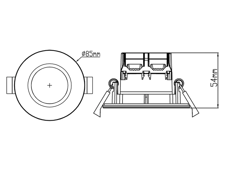 Die runden Einbaulampen aus Metall haben einen Durchmesser von 8,5 cm und eine Höhe von 5,4 cm. Für den Einbau wird ein 7,2 cm großer Ausschnitt und eine Einbautiefe von min. 6,2 cm benötigt.