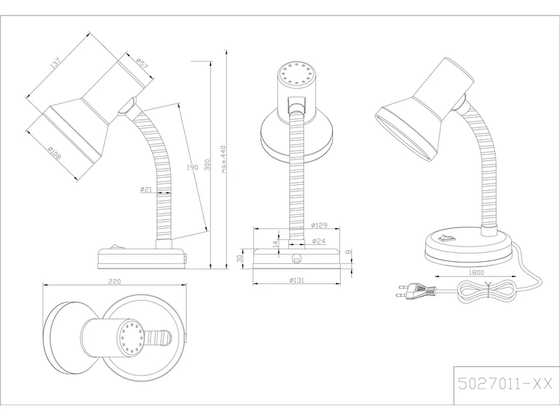 Ausgestattet mit einem praktischen Knopf, können Sie die Schreibtischleuchte PRONTO im Handumdrehen ein- und ausschalten. Durch den trichterförmigen Strahlerkopf wird eine helle und freundliche Atmosphäre im Raum geschaffen. Die maximale Höhe von 30cm ist durch den Flexarm einstellbar. Die Leuchte aus Metall und Kunststoff ist in multicolor gestaltet – zur individuellen Beleuchtung flexibel verstellbar.