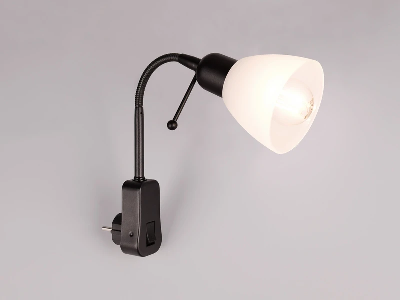 Die Farbgebung in Schwarz und der weiße Kunststoff Lampenschirm verleihen der Wandlampe ein zeitlos modernes Design, dass in nahezu jedes Interieur passt.