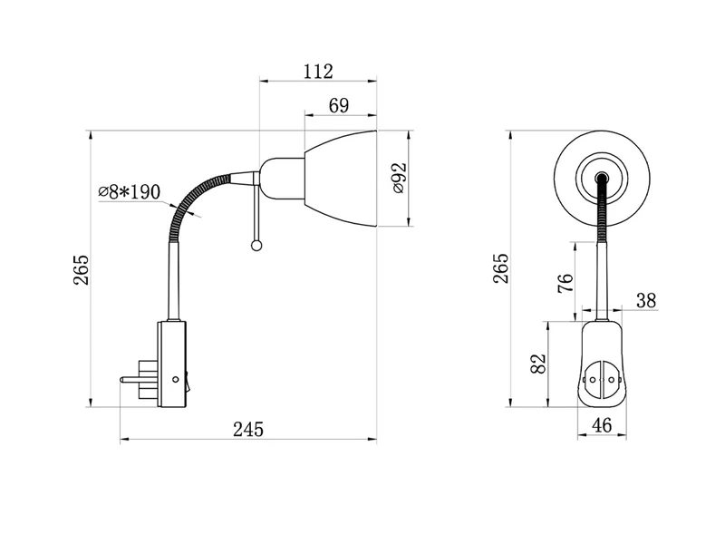 Die 26,5cm hohe Wandleuchte lässt sich über den Flexarm individuell ausrichten und ist mit einem An-Aus Schalter ausgestattet.