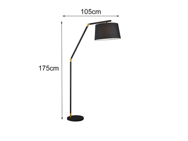 Die Leuchte hat eine Auslage von 105cm und erzeugt durch den stilvollen Leuchtenschirm ein gemütliches Licht, durch die Öffnung an der Oberseite entsteht zusätzlich ein dezenter Lichtkegel an der Decken. Darüber hinaus verfügt die Leuchte über einen Fußschalter für Ein/Aus, mit dem sie sich komfortabel bedienen lässt.
