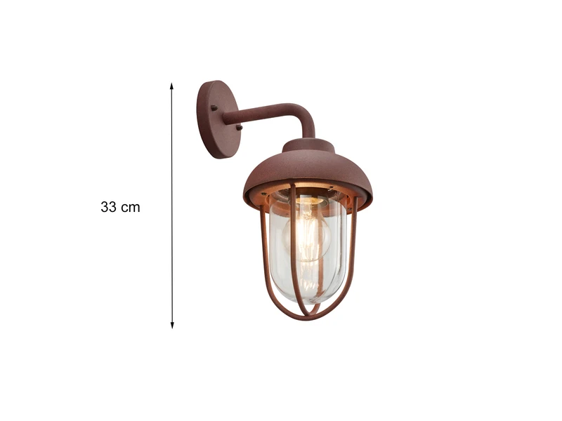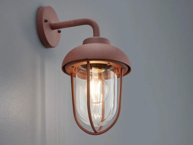 Gefertigt ist die Außenleuchte aus wetterfestem Druckguss Aluminium und klarem Glas. Die Oberfläche in Rostoptik liegt absolut im Trend und sorgt für ein edles Erscheinungsbild.