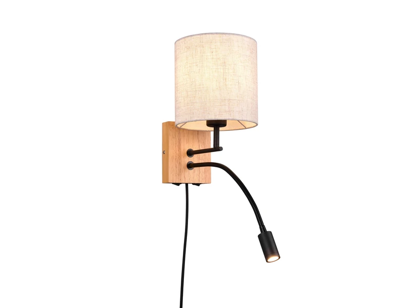 Mit ihrem skandinavischen Design und einem runden Stoffschirm in Leinenoptik fügt sich die 30cm hohe Wandlampe super in jede Einrichtung ein. Inspiriert von der nordischen Ästhetik, vereint sie minimalistisches Design, klare Linien und natürliche Materialien zu einer harmonischen Einheit.