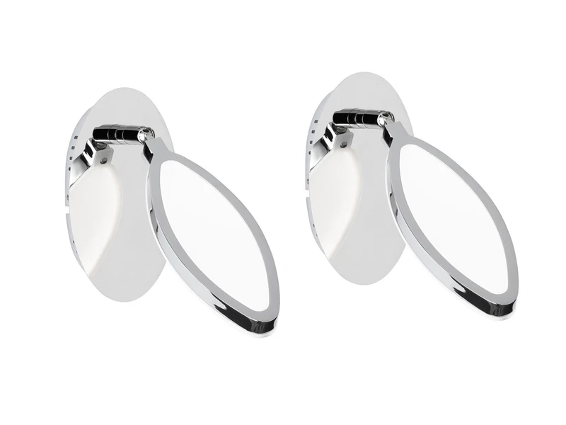 Die Chrom polierte Oberfläche verleiht der Wandlampe ihre exklusive Note, welcher durch eine elegante Formgebung harmonisch abgerundet wird. Der mit einer Acrylglasabdeckung versehene Spot in Form eines Blattes erzeugt ein sehr effektives, aber dennoch angenehmes Licht.
