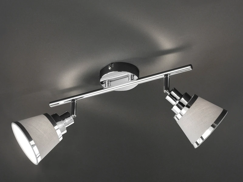 Die Leuchte passt mit ihren grauen Stoffschirmen zu einer Vielzahl von Wohnkonzepten. Der schlichte aber auch elegante Look machen den Deckenstrahler zu einem Designklassiker, der in modernen Wohnzimmern aber auch klassischen Schlafzimmer einen Platz findet.