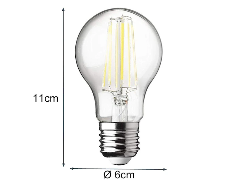 Das Leuchtmittel in transparentem Rauchglas hat einen Durchmesser von 6cm, eine Höhe von 11cm, ist über Ihre Hausinstallation extern dimmbar, und passend für alle Leuchten mit einer E27 Fassung.