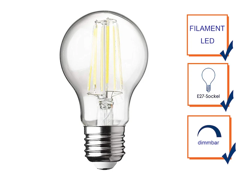 Bei den sogenannten Filament LED Leuchtmitteln haben Sie keine sichtbaren Leiterplatten oder Chips. Filament Leuchtmittel sind aus Klarglas und sehen wunderschön aus.