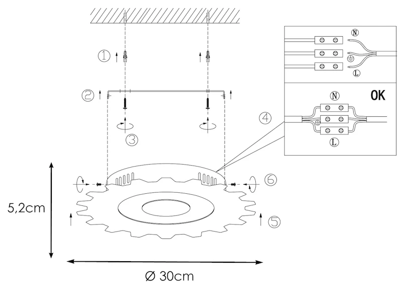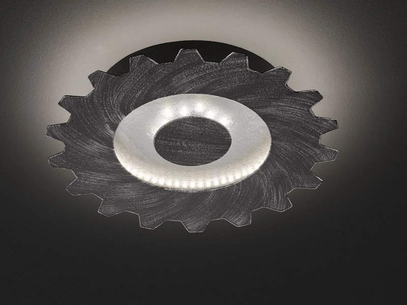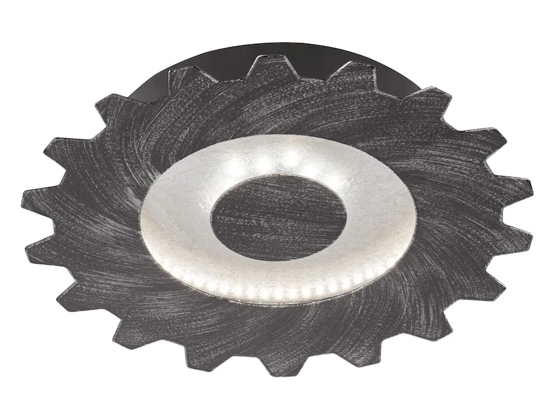 Mit ihrem einzigartigen Design, in Zahnradoptik, verleiht die Vintage Lampe Ihrem Wohnraum das gewisse Etwas. Die Silberne Oberfläche mit Goldakzenten lässt die Deckenleuchte, die einen Durchmesser von 30cm hat, in einem wunderschönen warmen Licht erstrahlen.