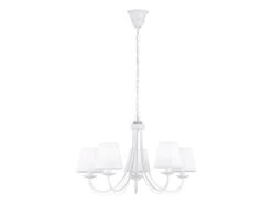 MeineWunschleuchte 5 Flammiger LED Kronleuchter Mit Stoffschirmen In Weiß Matt, Ø 70cm