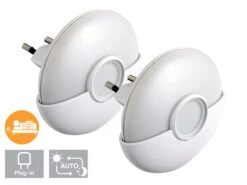 MeineWunschleuchte LED Nachtlichter 2er SET Plug-in Mit Steckdose & Dämmerungssensor – Ø 9cm