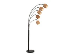 Fischer & Honsel Bogenlampe HYAZINTHE 5flammig 190cm Groß, Metall Schwarz Lampenschirme Seegras