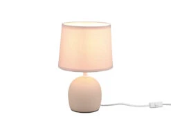 MeineWunschleuchte LED Tischleuchte Keramikfuß & Stoffschirm Beige, Ø16cm Höhe 26cm