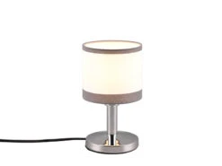 Reality Leuchten Tischleuchte DAVOS Mit Stoffschirm In Weiß/Grau, Touchfunktion Höhe 22,5cm